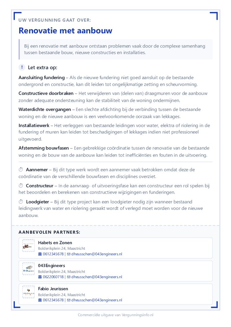Vergunningsinfo is een commercieel platform dat inzicht geeft in de bouwfase na het verkrijgen van een vergunning. Wij tonen bedrijven die actief zijn in de uitvoering van bouw en renovatieprojecten